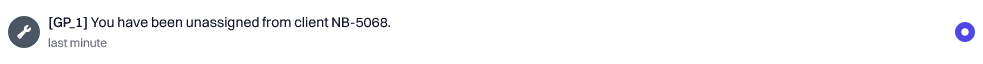 For all changes through the Client Assignment, both the old and the new Assignee receive corresponding Notifications. These Notifications display the `System` as responsible for the change: